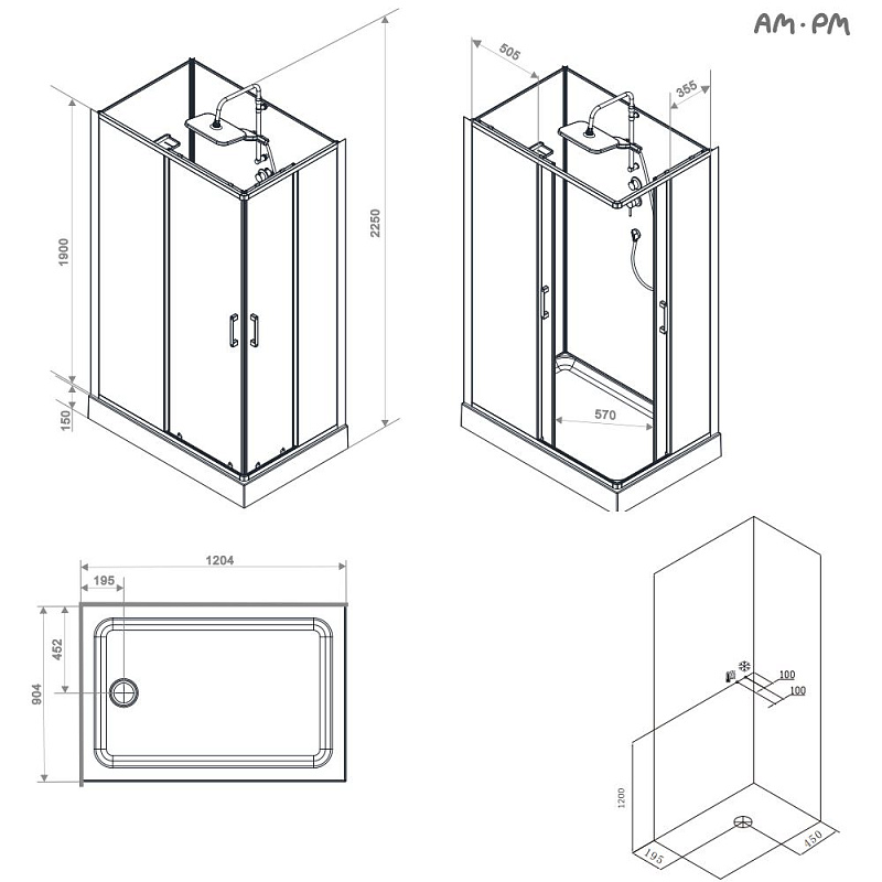 Душевая кабина 120x90 AM.PM Above W9XC-403-12090MT профиль серебристый, низкий поддон