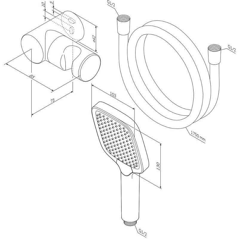 Душевой гарнитур бренда AM.PM из коллекции Func - самая функциональная коллекция в линейке AM.PM. Наши инженеры продумали и учли каждую деталь, чтобы сделать взаимодействие с продуктами максимально простым и комфортным для всех членов семьи. Цвет - черный. Размер (Ш/Г/В): 103x58x260 мм. Материал душевого гарнитура - пластик. Длина душевого шланга - 1750 мм. Размер ручного душа - 103х130 мм.