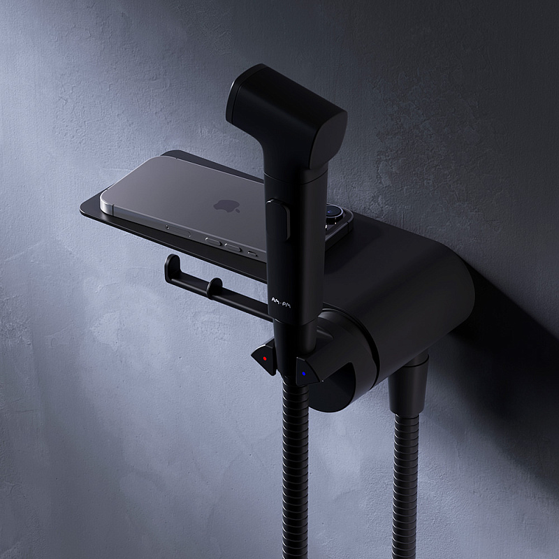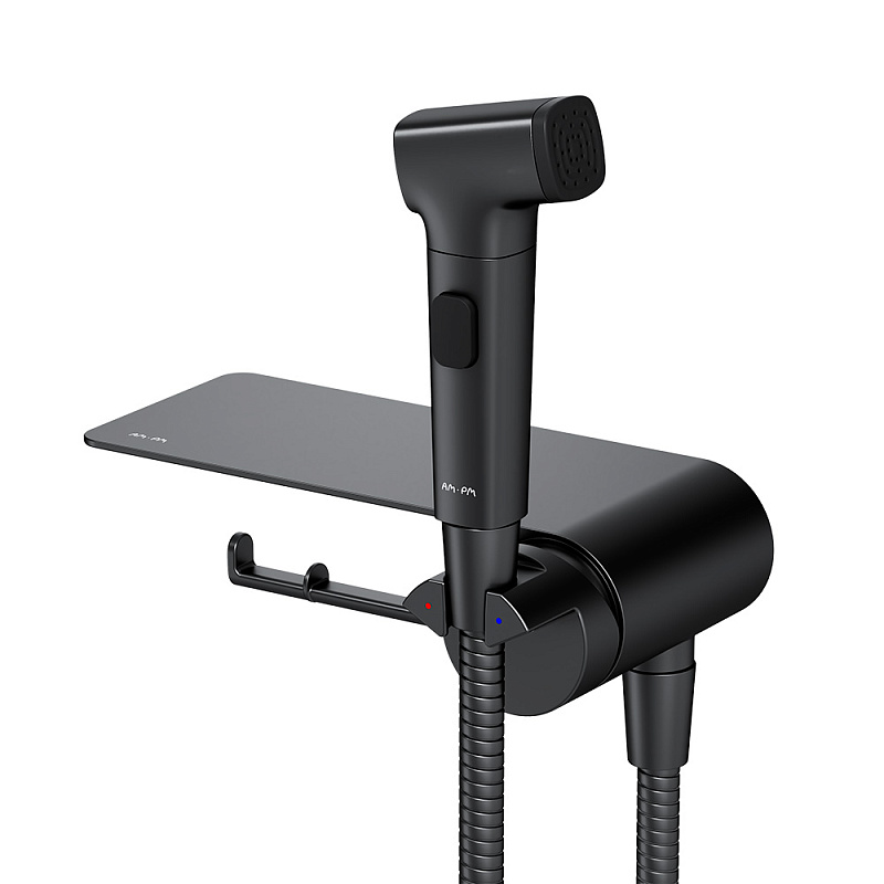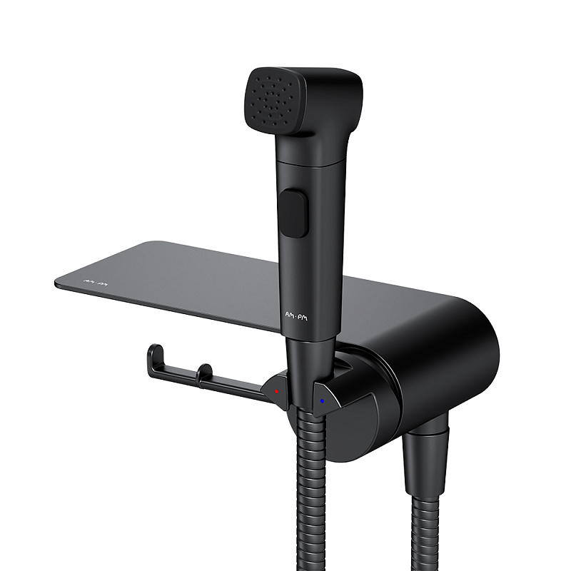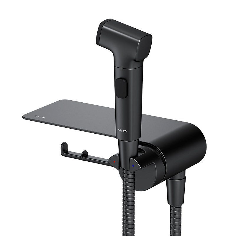 Гигиенический душ со смесителем AM.PM Func F0H8F922 черный встраиваемый, полка, шланг 1200, держатель туалетной бумаги