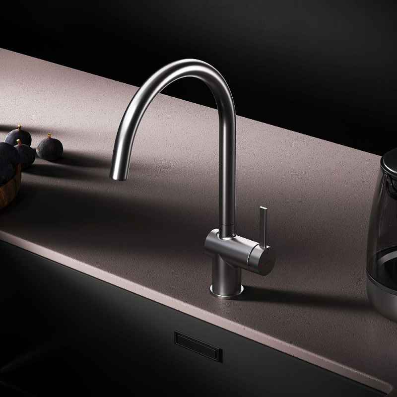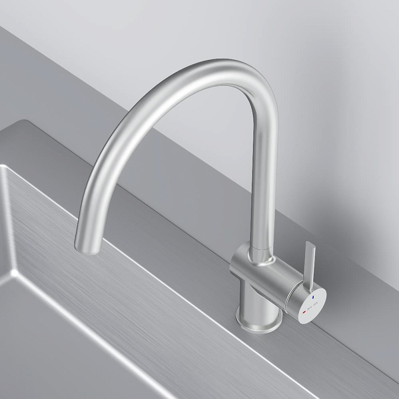 Встречайте долгожданное пополнение нашумевшей коллекции Func — кухонные смесители с оригинальными «фишками», характерными для всей коллекции. Дизайн, характерный только для премиум-сегмента, благодаря собственным дизайнерам бренда теперь представлен и в более доступной ценовой категории. Размер (Ш/Г/В): 105x262x380 мм. Материал - нержавеющая сталь, цинк, латунь. Цвет - сатин. Тип управления - однозахватный. Излив - поворотный.
