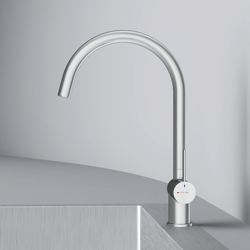 Смеситель для кухни AM.PM Func F8F07011 высокий с С-изливом, сатин
