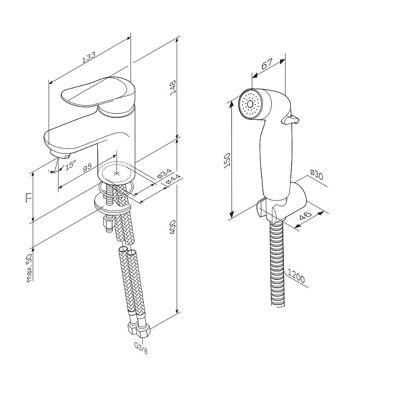 Смеситель для раковины AM.PM коллекции Sunny - исключительный дизайн от всемирноизвестного агенства Brandis (Германия), к которому хочется прикоснуться. Гигиенический душ делает смеситель подходящим для наполнения больших емкостей и даже для мытья лап домашнего любимца. Размер (Ш/Г/В): 44x133x149 мм. Материал - латунь. Цвет - хром. Длина душевого шланга - 1500.