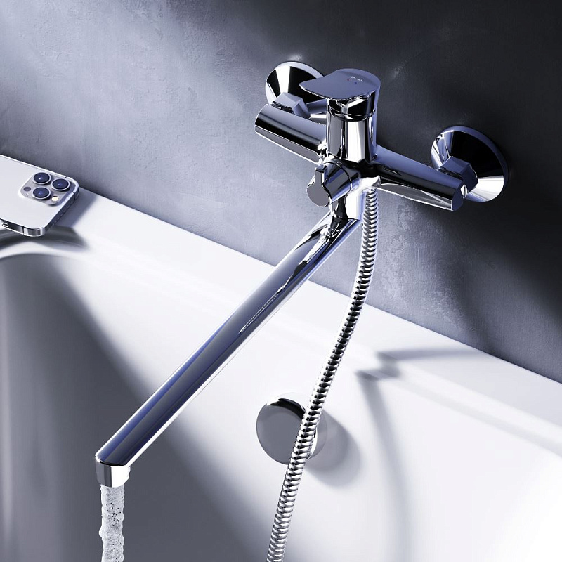 Смеситель для ванны и душа AM.PM Crave F9C90200 длинный излив, хром