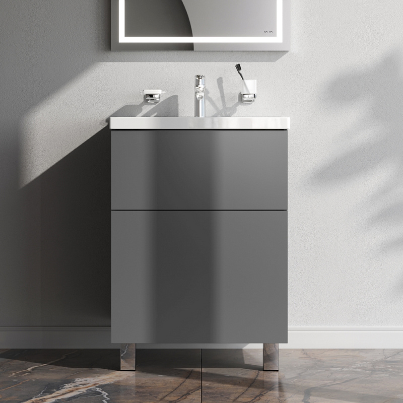 Тумба с раковиной 60 AM.PM Gem M90FSX06022WG32 напольная на ножках белый глянец