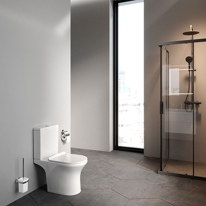Унитаз-компакт напольный AM.PM Stern C7L8600SC безободковый с сиденьем микролифт, белый