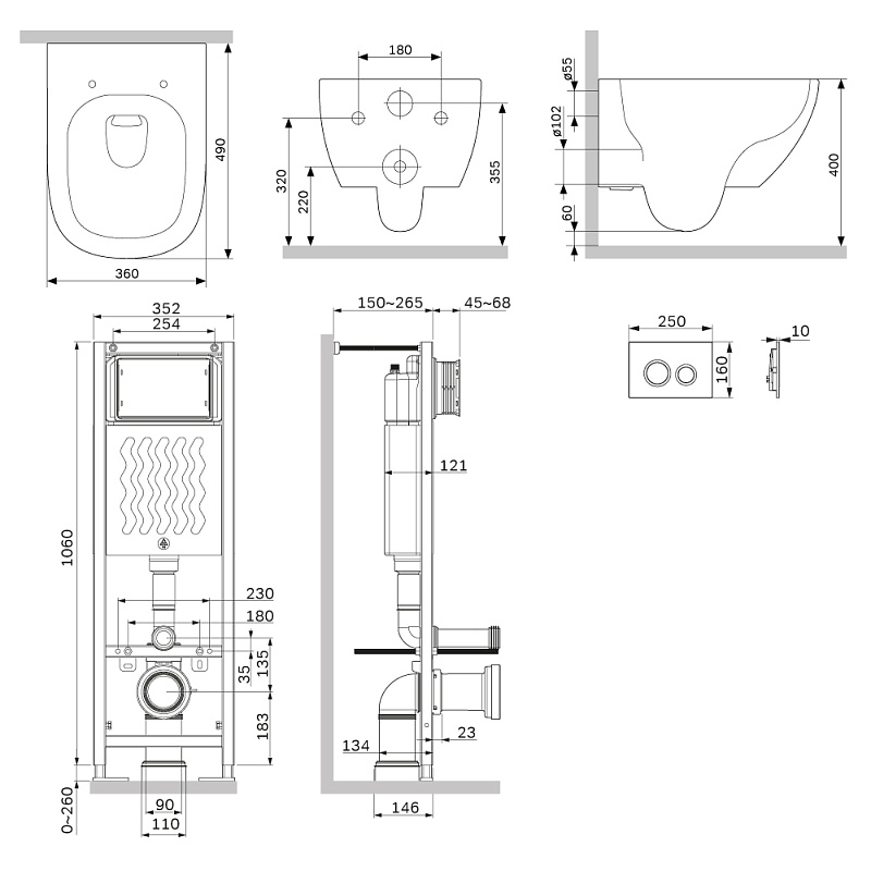 Инсталляция для подвесного унитаза бренда AM.PM коллекции ErgoFit с механическим управлением смыва включает в себя максимально полный комплект поставки: крепления, патрубки, звукоизолирующую прокладку, двухрежимную клавишу смыва. Подвод воды: Сверху универсальный (справа или слева). Размер инсталляции(Ш/Г/В): 352x150-265x1060-1320 мм. Размер клавиши (Ш/Г/В): 250x10x160 мм. Цвет и материал: синий каркас из нержавеющей стали, белый бачок из ABS-пластика, хромировання клавиша. Форма кнопок: круглые.
