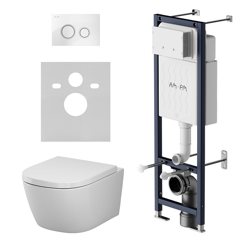 Готовый комплект к установке: система инсталляции для подвесного унитаза AM.PM Libre IS110101.601900 с механической белой клавишей, подвесной унитаз AM.PM Libre C601900SC.