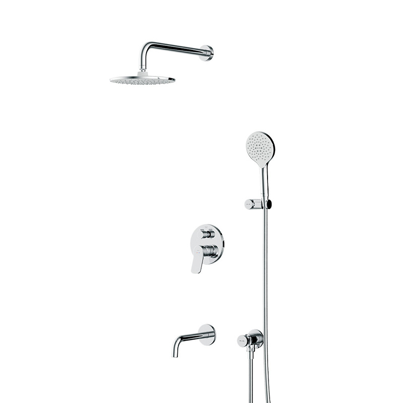 Размер ручного душа - 120 мм. Длина душевого шланга - 1750 мм. Размер держателя лейки ручного душа (Ш/Г/В): 106x75x42 мм. Цвет - хром. Монтируемый в стену излив - это современное решение для экономии пространства. Длина излива составляет 204 мм. Цвет - хром. Размер смесителя (Ш/Г/В): 150x144x180 мм. Материал встраиваемой душевой системы - Латунь, Zamak, нержавеющая сталь, PPA.