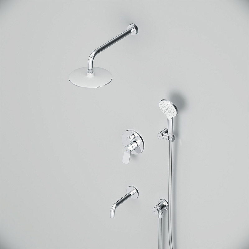 Встраиваемая душевая система от бренда AM.PM коллекции X-Joy включает в себя по-настоящему дизайнерские продукты в своем ценовом сегменте: лейку тропического душа с держателем, смеситель для ванны и душа, душевую лейку с держателем, шланг для душа, излив на ванну. Разработанные дизайн-агентством GP designpartners из Австрии, они завоевали любовь многих покупателей.