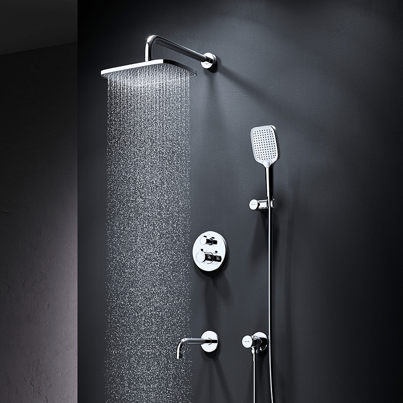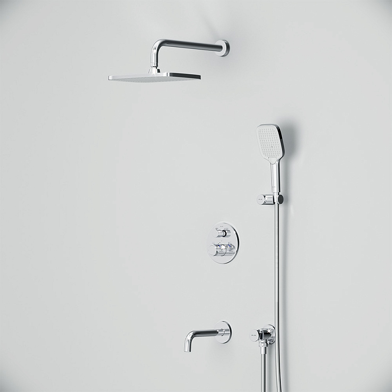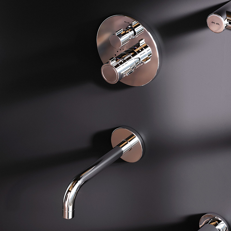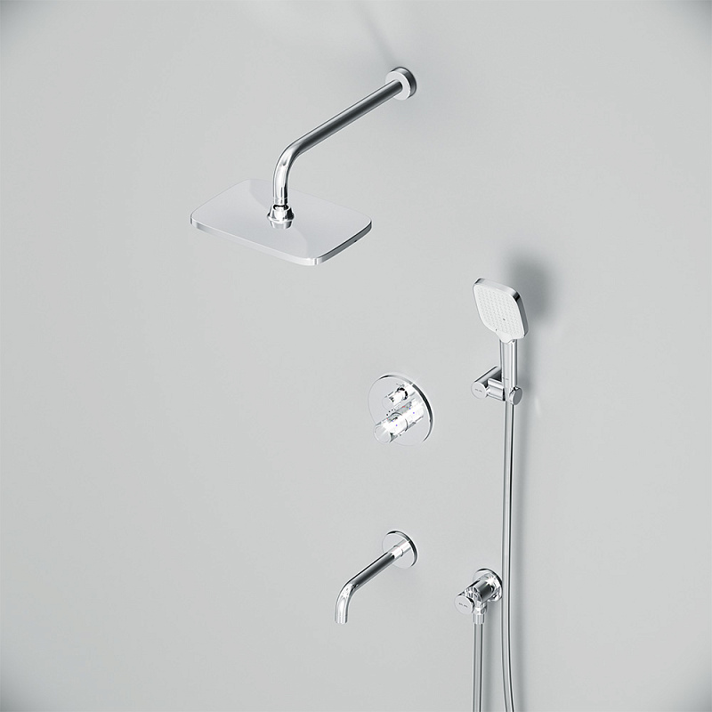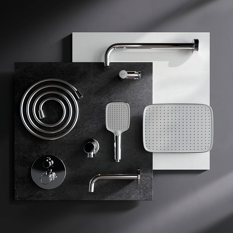 Встраиваемая душевая система от бренда AM.PM коллекции X-Joy включает в себя по-настоящему дизайнерские продукты в своем ценовом сегменте: лейку тропического душа с держателем, термостатический смеситель для ванны и душа, душевую лейку с держателем, шланг для душа, излив на ванну. Разработанные дизайн-агентством GP designpartners из Австрии, они завоевали любовь многих покупателей.
